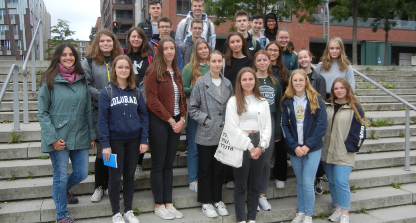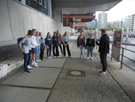 Die Klasse 12a fuhr in der ersten Kompaktwoche des Schuljahres 2021/22 nach Hamburg in Begleitung der Geographie-Lehrkräfte Frau Immetsberger und Herrn Baum. Ziel der Tagesexkursion war es die Baufortschritte in der HafenCity zu entdecken. Die HafenCity ist ein Stadtteil in der Mitte Hamburgs und am nördlichen Ufer der Elbe. Dort sollen neben vielen neuen Arbeitsplätzen und Wohneinheiten auch Schulen und Kindergärten entstehen. Einige Teile dieses Gebietes sind schon neu gebaut, andere sind gerade im Bau oder werden noch konzipiert. Damit ist es in Europa zur Zeit das größte innerstädtische Entwicklungsprojekt.