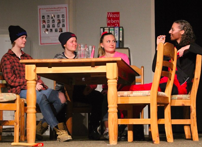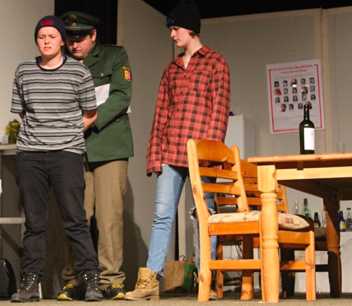 Wie so oft gab es viel mehr männliche Rollen als Schauspieler. Aber zum Glück gab es auch in dieser Klasse ausreichend Mädchen, die Lust hatten, sich der Herausforderung zu stellen, einen männlichen Charakter zu spielen. Und das machten sie gut! Das ganze Ensemble bekam regelmäßig ein zusätzliches Coaching von Schauspieler Matthias Jaschik, so dass die Klasse bald in der Lage war, zum Beispiel auch kleinste emotionale Wechsel in Mimik und Sprache abzubilden.