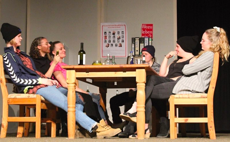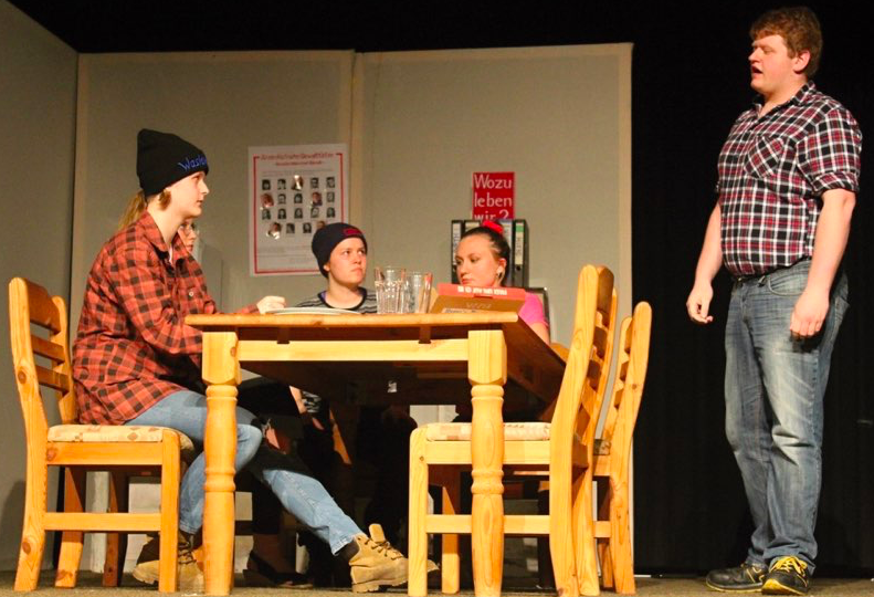 Vor etwa einem Jahr traf die damals noch 11d mit ihrer Lehrerin Frau Steinborn die Entscheidung, den auch im Deutschunterricht oft gelesenen Jugendroman „Auerhaus“ von Bov Bjerg als Theaterstück zu inszenieren.