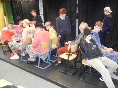 Dieser Tausch stand in der letzten Zeit dann auch besonders im Fokus, denn dabei gibt es vieles zu beachten – der Gang, die Haltung, die Sprache und die Kleidung sind nicht wie gewohnt. Das merkten die Schülerinnen und Schüler schnell, als sie in ihre Kostüme schlüpften. Für die Jungen war das Gefühl, einen Rock und einen BH zu tragen, sehr ungewohnt. Für die Mädchen waren zuerst einmal die Haare die größte Herausforderung, denn für einige Rollen mussten sie kurz aussehen und eine Schere wollte keine benutzen.