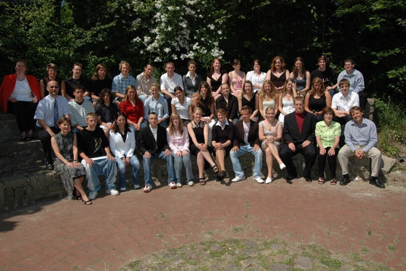 Der junge Mann im seriösen Anzug mit rotem Schlips in der mittleren Reihe ist übrigens kein Abiturient des Jahrgangs 2006, sondern der Schulleiter Dirk Söhren der damaligen Integrierten Gesamtschule Eckernförde.