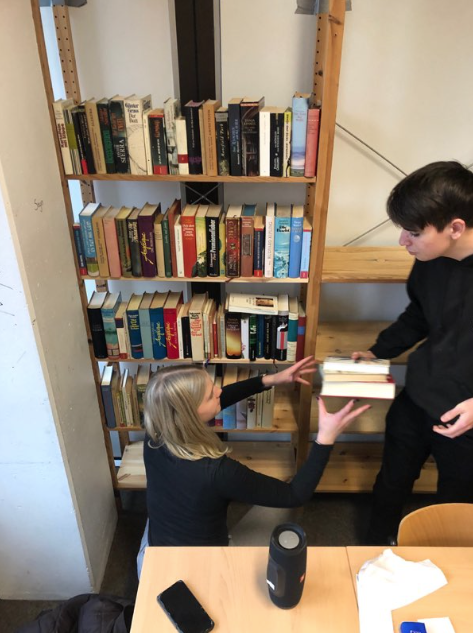 Die Bilanz des Tages: Viel Spaß an und mit den Büchern, viele neue Eindrücke und Gespräche, nicht so viele Spenden wie erhofft, aber von den übriggebliebenen Büchern will sich nun auch keiner trennen, weil „unsere Klasse mit der Bücherwand doch jetzt sehr intellektuell aussieht“ und „wir gemerkt haben, dass wir die Fachbücher sogar für den Unterricht gebrauchen können“ (Originalzitate). Das ist doch schon mal eine gute Bilanz und lässt hoffen, dass sich die Schülerinnen und Schüler zukünftig wieder häufiger mit Büchern befassen werden.