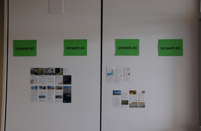 Nachdem die Idee in der Welt war, ist sie umgesetzt worden: Die Umwelt-AG hat eine Wandzeitung an der Wand der Eingangstür zum Verwaltungsanbau, gegenüber der Klasse 13c installiert. Erste Informationen sind schon ausgehängt, weitere werden folgen. Auch alle Schülerinnen und Schüler sind aufgefordert, interessante Artikel auszuhängen, die mit Umwelt und Klimawandel zu tun haben. Ältere Artikel können dann wieder abgenommen werden.