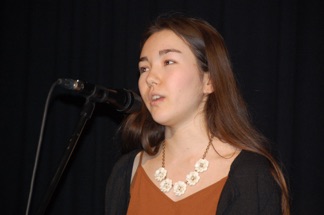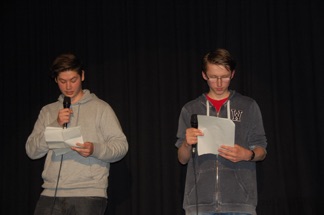 Die vielen Zuschauer in der Aula waren begeistert. Jeder der Beträge, die inhaltlich sehr verschieden waren, wurde beklatscht, während der Beiträge herrschte eine gespannte Ruhe. In der Pause zur Mitte der Veranstaltung hörte man im Foyer Diskussionen über die Inhalte. Mit großer Überraschung stellte man fest, dass jede Autorin/jeder Autor auf der Bühne recht selbstbewusst auftrat, einige sogar ohne Vorlage ihre Texte zu Gehör brachten und auch eine passende Mimik und Gestik dazu einstudiert hatten. Einen Sonderapplaus bekam die Schülerin Alwina, die aus Kasachstan stammt, erst seit drei Jahren Deutsch lernt und ihren Text ohne Vorlage auf Deutsch vortrug.