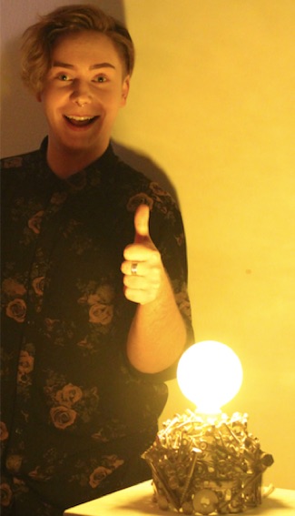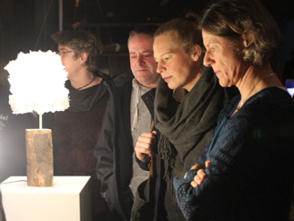 Mag es am im 13. Jahrgang vorgegebenen Thema gelegen haben, oder wie es in den Eröffnungsworten von Jonas Steinbach anklang, die Inspiration in diesem sehr dunklen Winterhalbjahr, es entstanden jedenfalls vornehmlich Lampen und Leuchtobjekte. Um diese optimal zur Geltung zu bringen, wurde während der Ausstellung die gesamte Schule abgedunkelt. Und auch die wenigen nicht selbst leuchtenden Designobjekte wurden in dieser strahlenden Gesellschaft von etwa 20 individuellen Lampen ins rechte Licht gerückt.