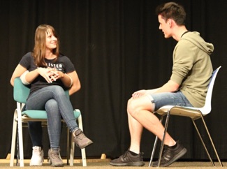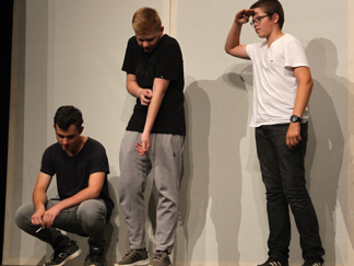 Einblicke gab es in diesem Jahr in die Arbeit des brandneuen Faches „Gestalten“ des 7. Jahrgangs sowie in die DSP-Kurse der Jahrgänge 8, 9 11 und 12. Wie schon im letzten Jahr bestach auch das diesjährige Programm durch seine große Vielfalt: Sprachgestaltung und effektvolles Schattenspiel zum Thema „Süchte“, tanzende Superhelden und Bösewichte, Improvisationstheater, Charakter- und Emotionsstudien sowie eine kurze selbst geschriebene Szene zum Thema Drogenmissbrauch sorgten für ein zum Teil lustiges, zum Teil aber auch nachdenkliches Programm. Wie schon im letzten Jahr wurde sofort deutlich, wie inspirierend diese Schau vor allem für die Schülerinnen und Schüler aus den gerade nicht auf der Bühne stehenden Kursen war, wurde doch hier in aller Kürze deutlich, wie viele Facetten das „Darstellende Spiel“ doch bietet.