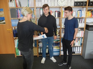 Wie auf dem Foto zu sehen haben wir von Maren Stolte, der Leiterin der Begabten- und Begabungsförderung / IQSH 323 eine Urkunde und eine Bescheinigung bekommen, die uns offiziell als Digitalpiloten ausweist. Wir haben schon einen Termin an einer Grundschule bekommen, um dort die richtige Nutzung von digitaler Medien zu erklären.