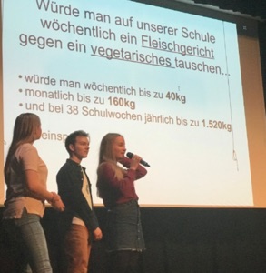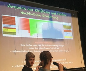 Die Ergebnisse und Ideen wurden von den Schülerinnen und Schülern mutig vor den Gästen in der Aula vorgestellt. Die vielen präsentierten Denkanstöße sorgten im Anschluss an die Präsentationen für eine lebhafte Diskussion mit den Gästen, bei denen die Ideen augenscheinlich bereits erste Unterstützer fanden.